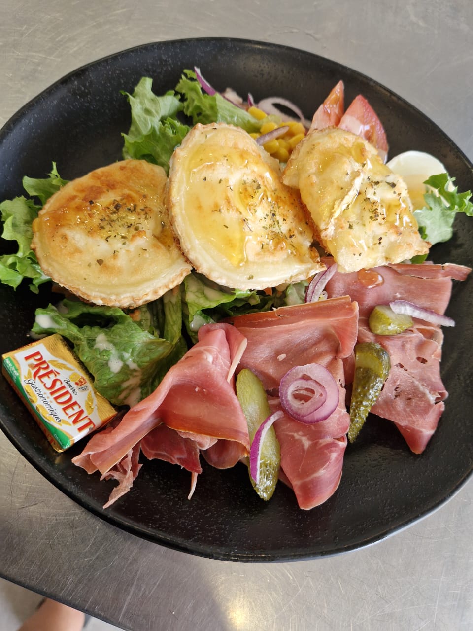 Salad, Raw Vegetables, Goat, Hot, Honey, Raw Ham