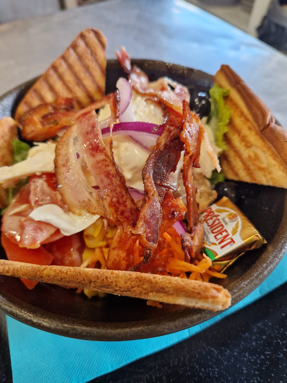 Salad, Raw Vegetables, Chicken, Bacon,…