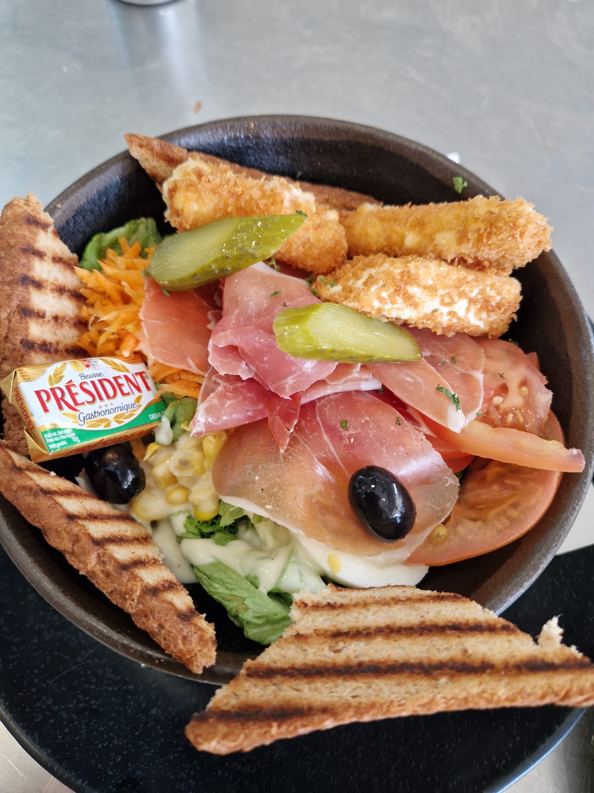 Salad, Raw Boiled Egg, Raw ham, Avocado…