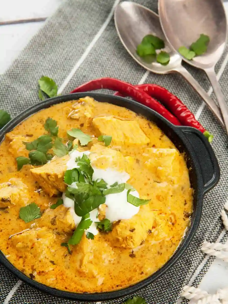 Tender chicken cooked in a fragrant, creamy gravy made with yogurt, nuts, and aromatic spices, offering a mild yet rich…