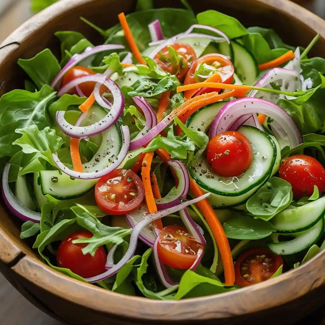 A Salad of Red Onions, Cucumber, Carrot, Tomatoes, Lemon Juice and Pepper.