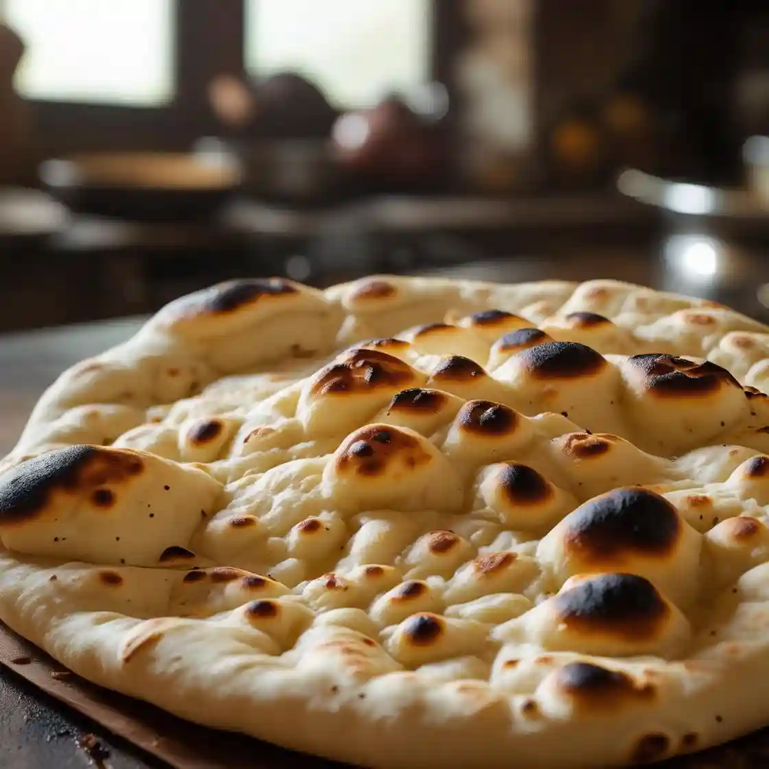 Soft, fluffy, and warm Indian flatbread, typically baked in a tandoor,
