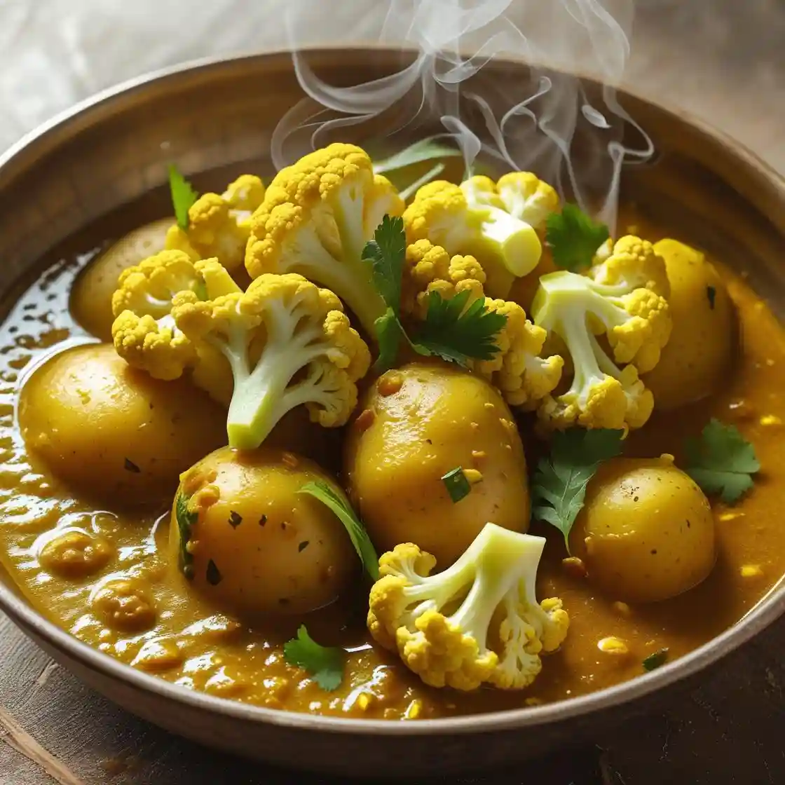 A deliciously Spiced Curry made with Tender Potatoes and Cauliflower