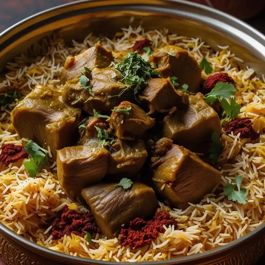 A Flavorful, Aromatic Dish with Succulent Pieces of Mutton, Fragrant Basmati Rice, and a Perfect Blend of Spices, Creat…