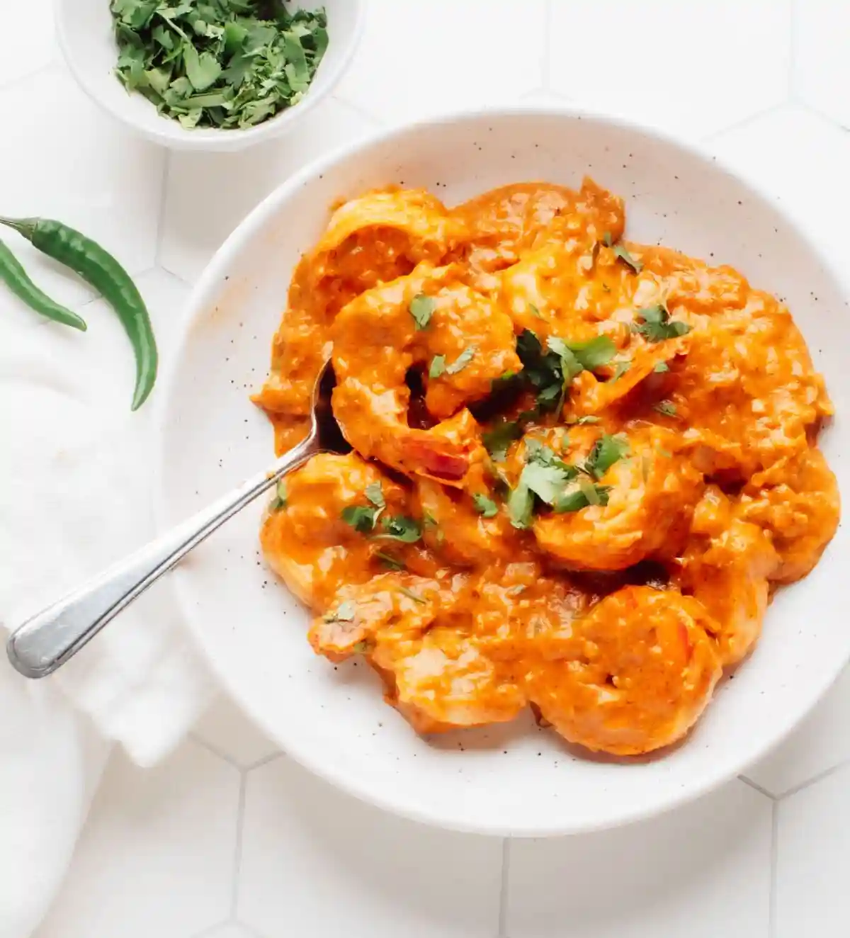 Succulent shrimp cooked in a rich, creamy tomato-based gravy with a hint of butter, offering a smooth and indulgent fla…