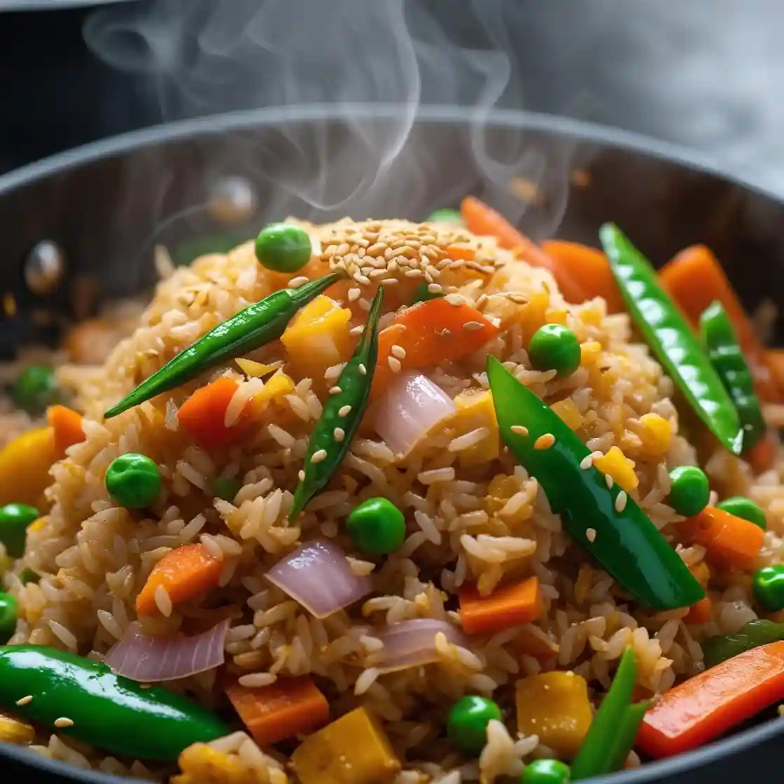 A Fragrant, Stir-Fried Rice Dish Loaded with Colorful Vegetables and Seasoned with Aromatic Spices for a Delightful Tas…