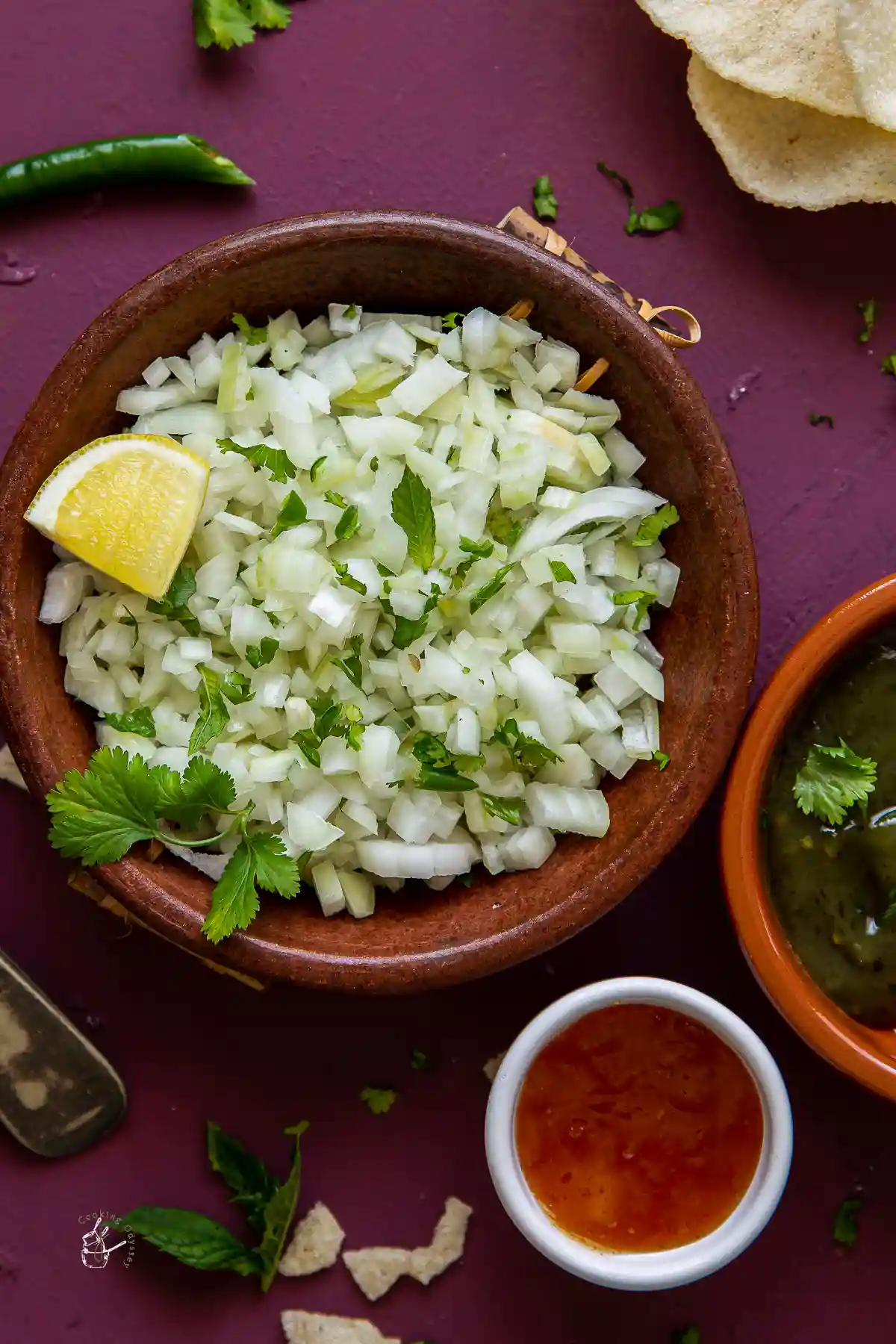 Chopped onions with lemon and pepper.