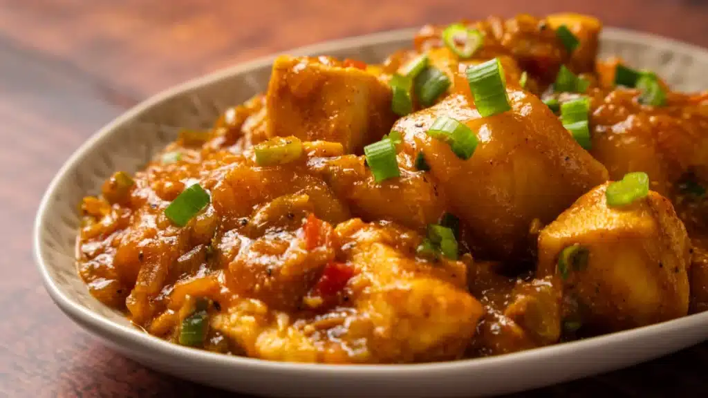 A Deliciously Crispy Chicken Dish in a Rich, Savory, and Slightly Tangy Sauce, Combining the Perfect Indo-Chinese Flavo…