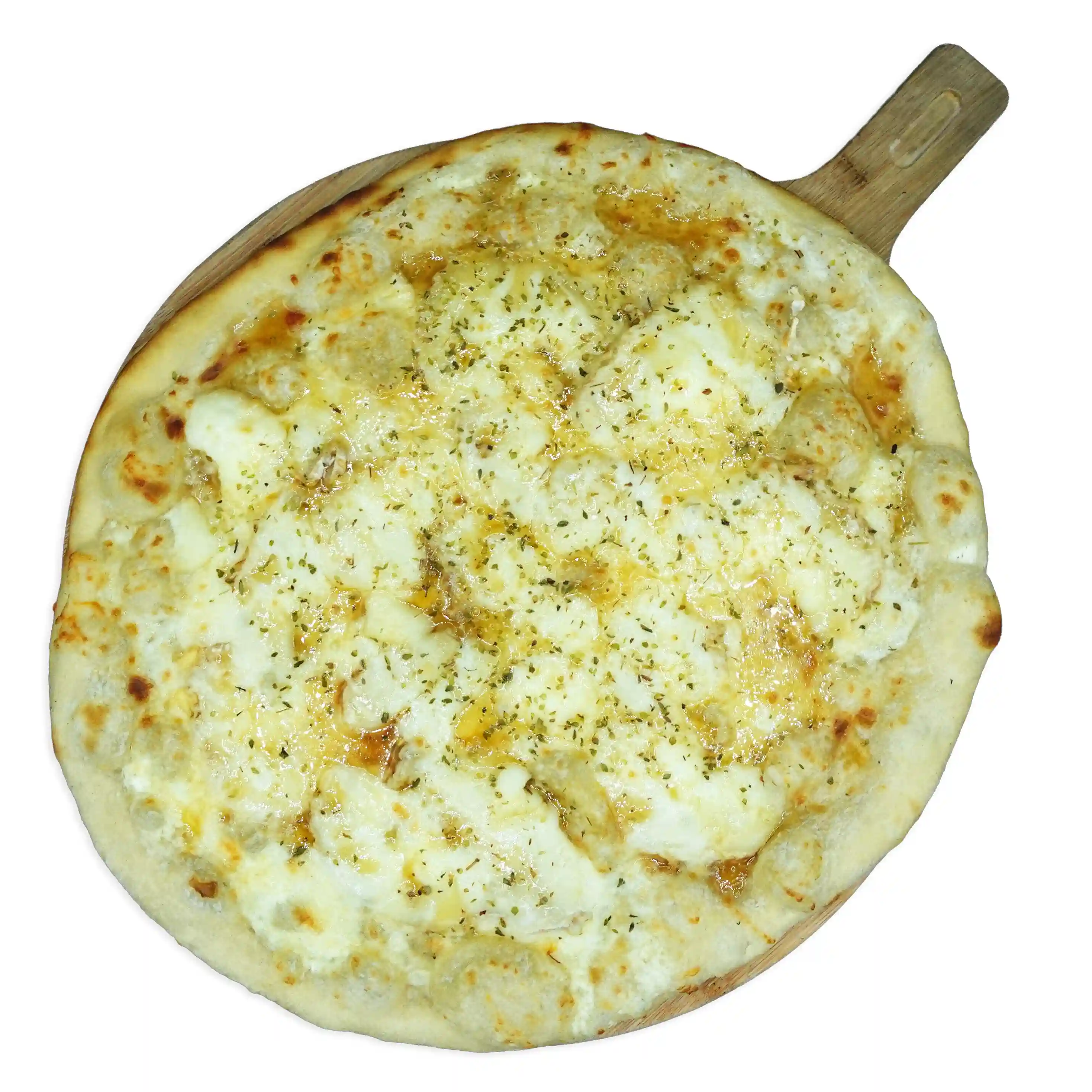 Fresh cream, Mozza, Emmental, Mushrooms, Gorgonzola, Spinach, Garlic, Honey