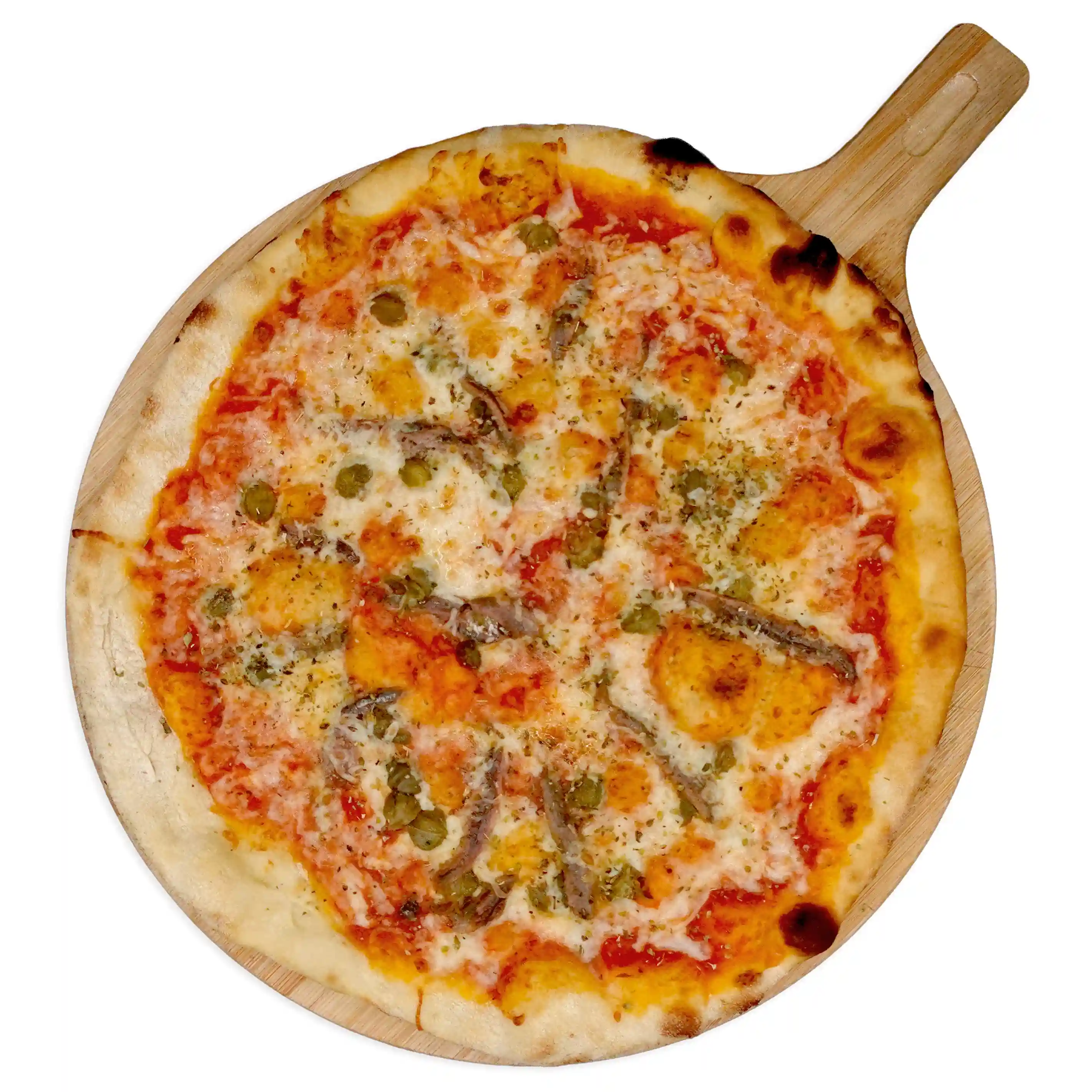 Tomato sauce, Mozza, Emmental, Anchovies, Capers