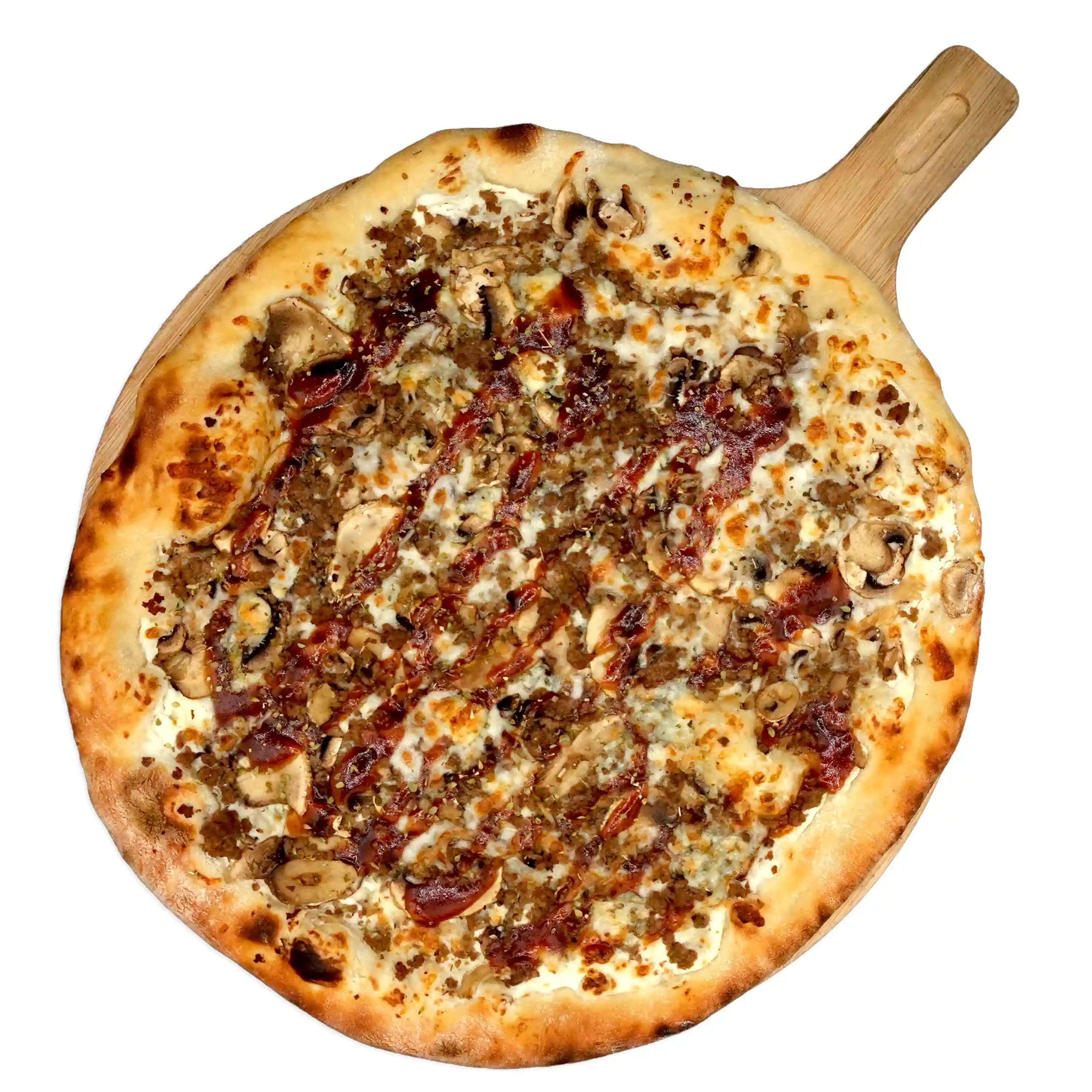 Tomato sauce, Mozza, Emmental, Mushroom…