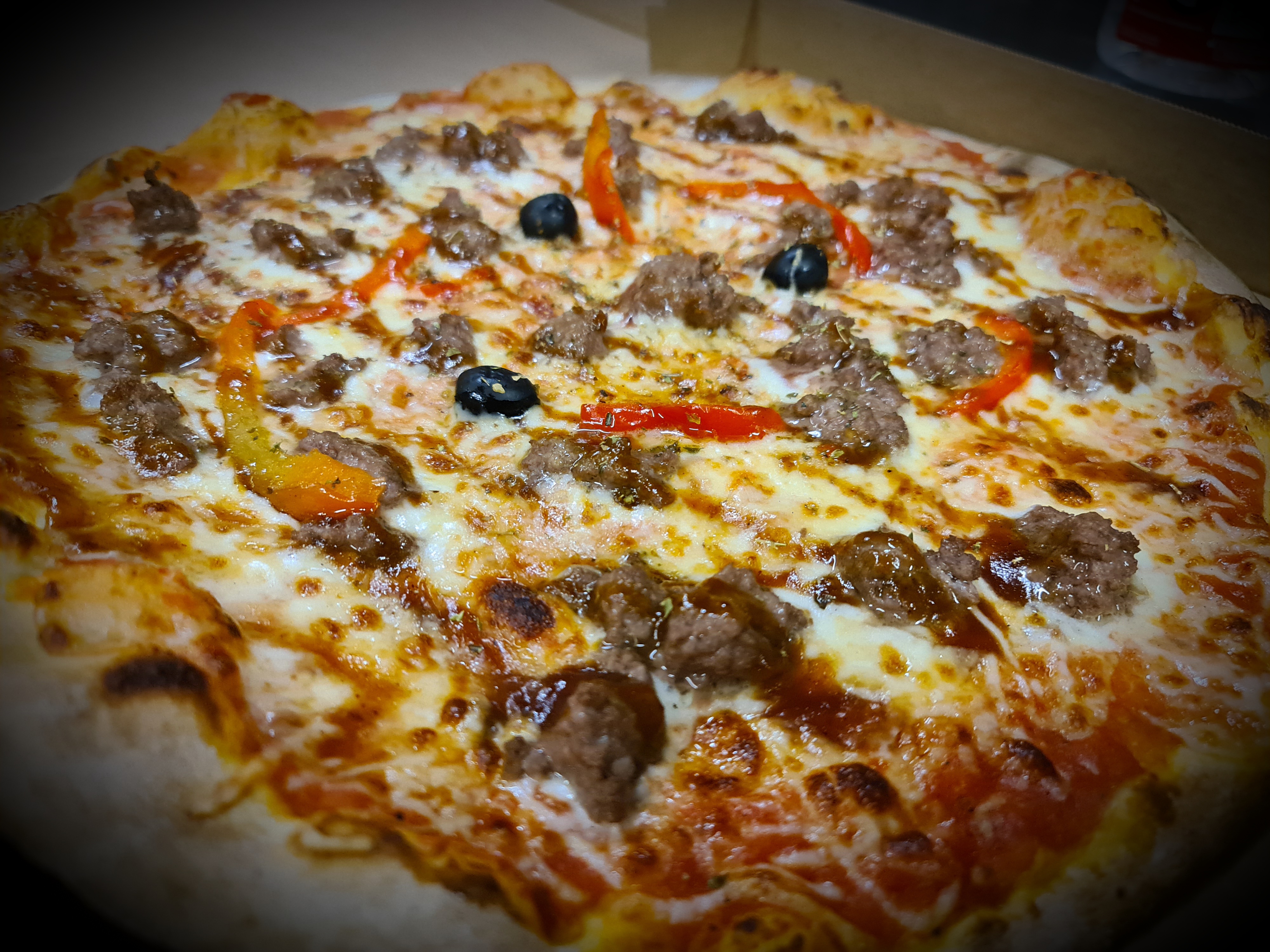 Tomate, Fromage, Viande Haché, Chèvre, Poivron, Olive, Origan