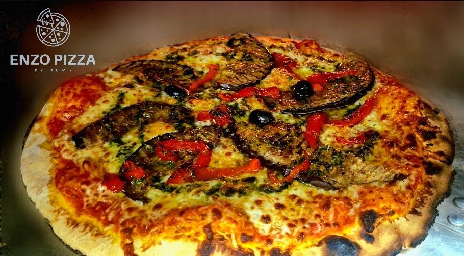 Tomate, Fromage, Aubergine, Poivron, Persillade, Olive, Origan