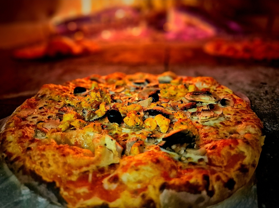 Tomate, Fromage, Poulet, Champignons, Crème, Olive, Origan